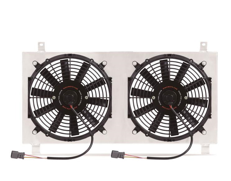- Includes aluminum fan shroud and two 12" slim electric fans