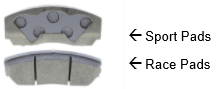Brakepads: The kit comes with "Sport" pads (for street use). For track use we recommend the "Race" pads, which are more resistant to heat.